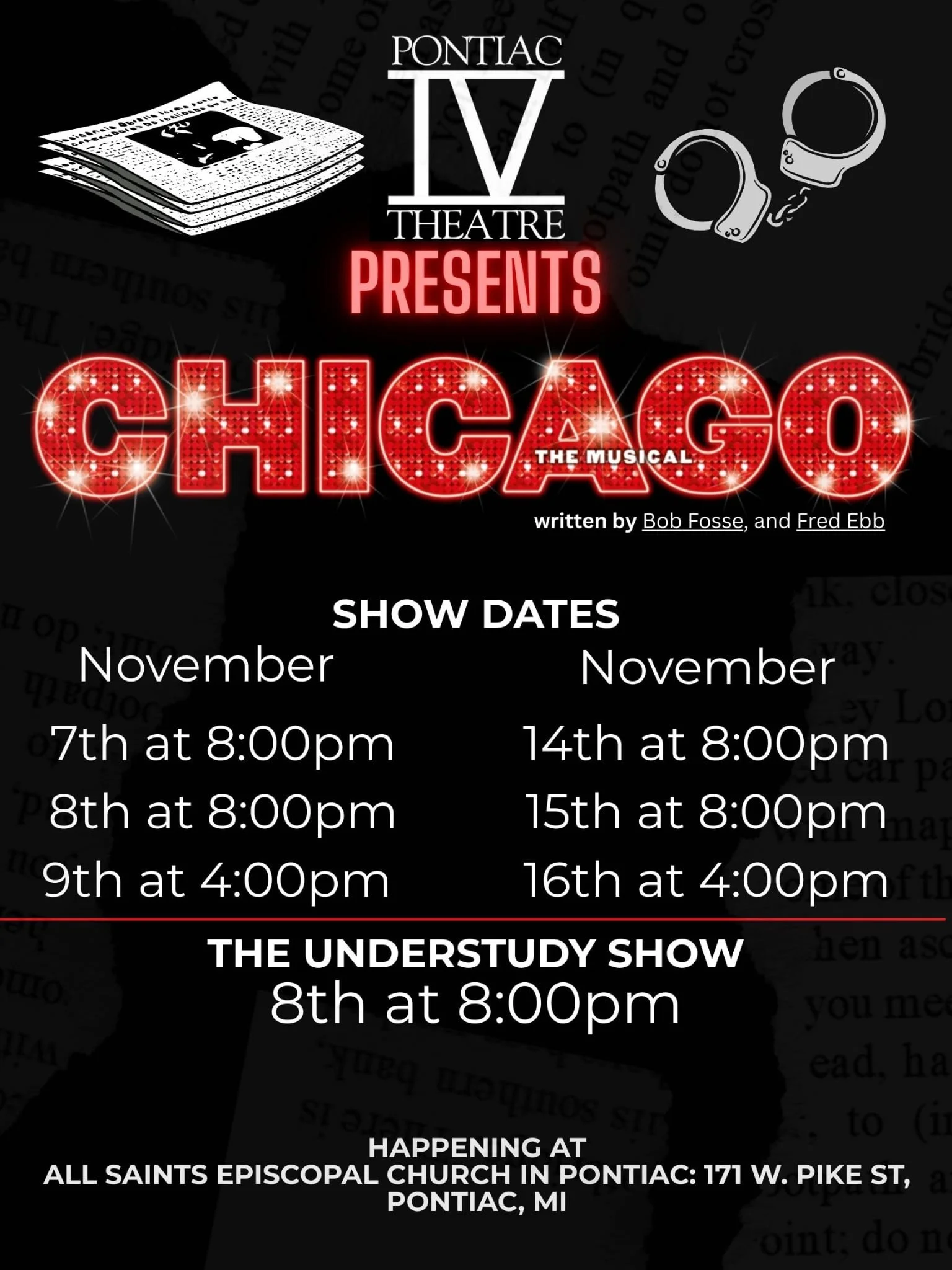 Show Dates: Nov. 7th, 8th, 14th, 15th @8pm & 9th, 16th @4pm